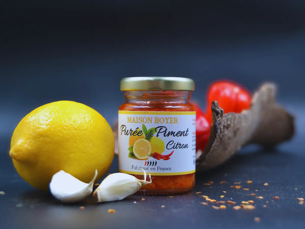 Nous avons marié le caractère délicat de notre purée de piment (niveau 1) avec le zeste vif et parfumé du citron frais.